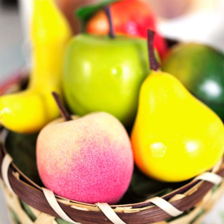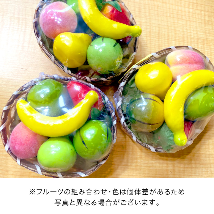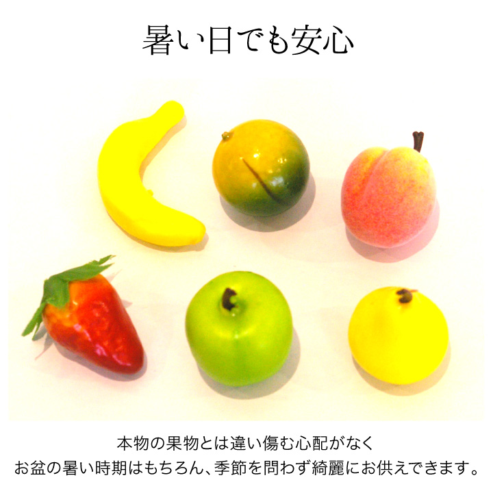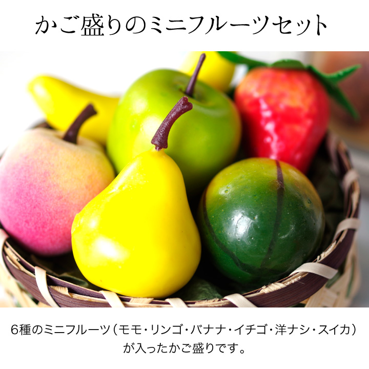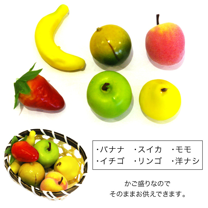 ミニチュアサイズのくだもの6種をかごに盛り合わせた、コンパクトなお供えフルーツセットです。