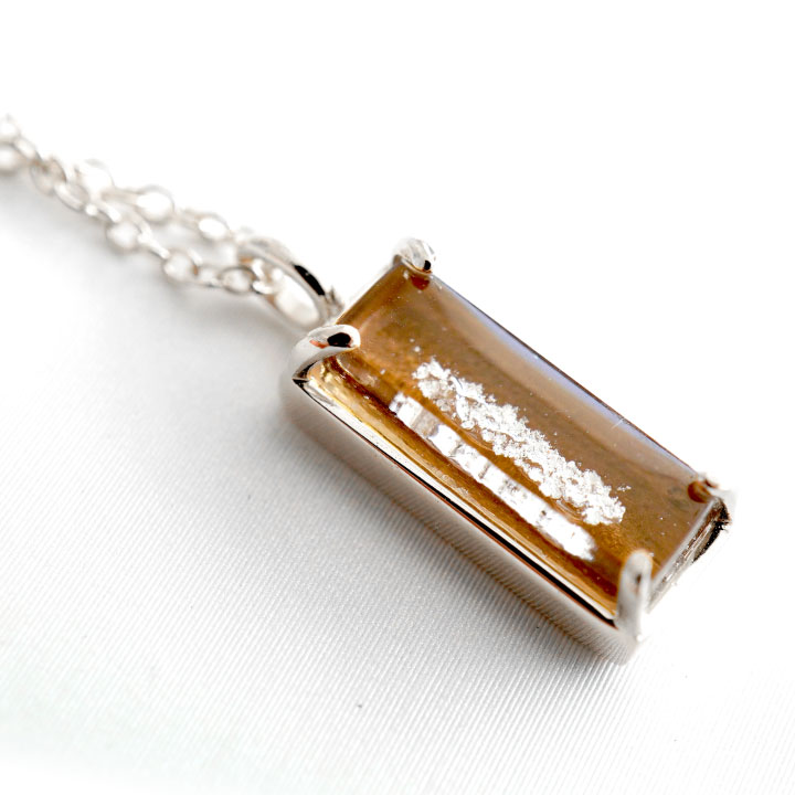 透明感がとてもきれいな、これまでに無かったデザインの遺骨ジュエリーです。