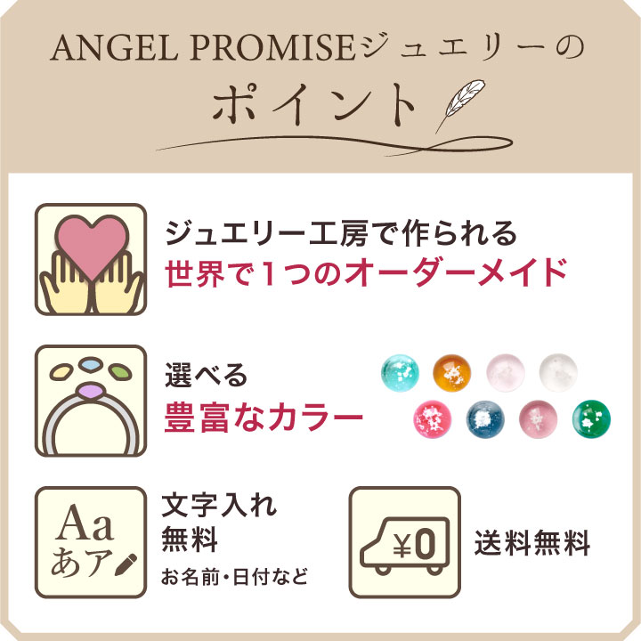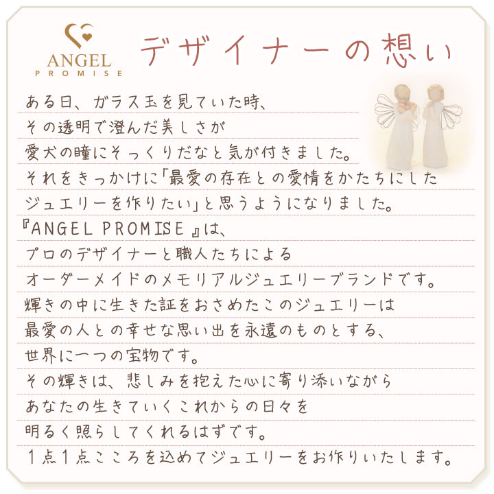 | ガラス遺骨ジュエリー 「エンジェルプロミス(Angelpromise)」 シリーズ一覧ページはこちら > |