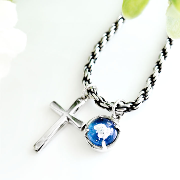 美しいカラーガラスの中に故人様のご遺骨を少量封入して、お二人の絆をつなぐ特別なジュエリーをお作りいたします。