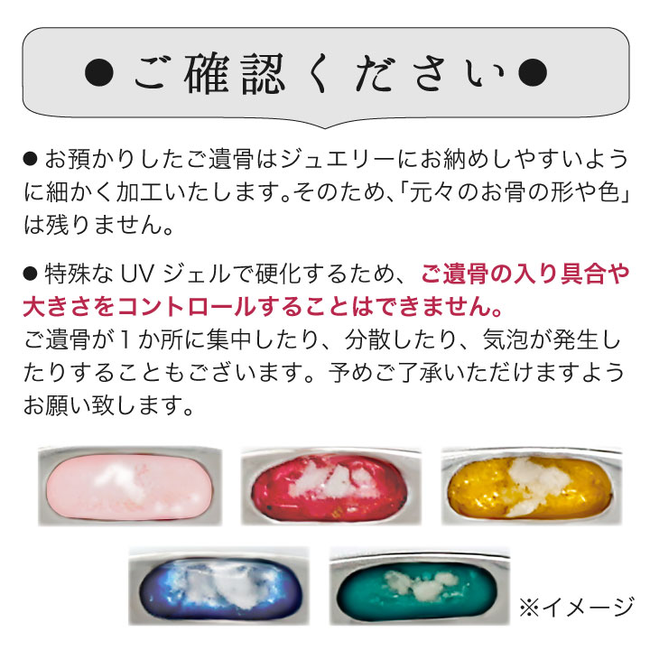 美しい樹脂の中に故人様のご遺骨を少量封入して、お二人の絆をつなぐ特別なジュエリーをお作りいたします。