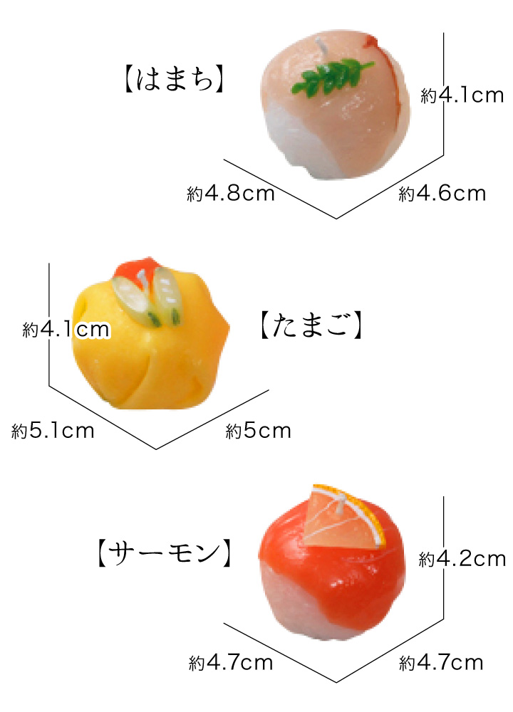 本物そっくり 手まり寿司キャンドル<はまち・たまご・サーモン>