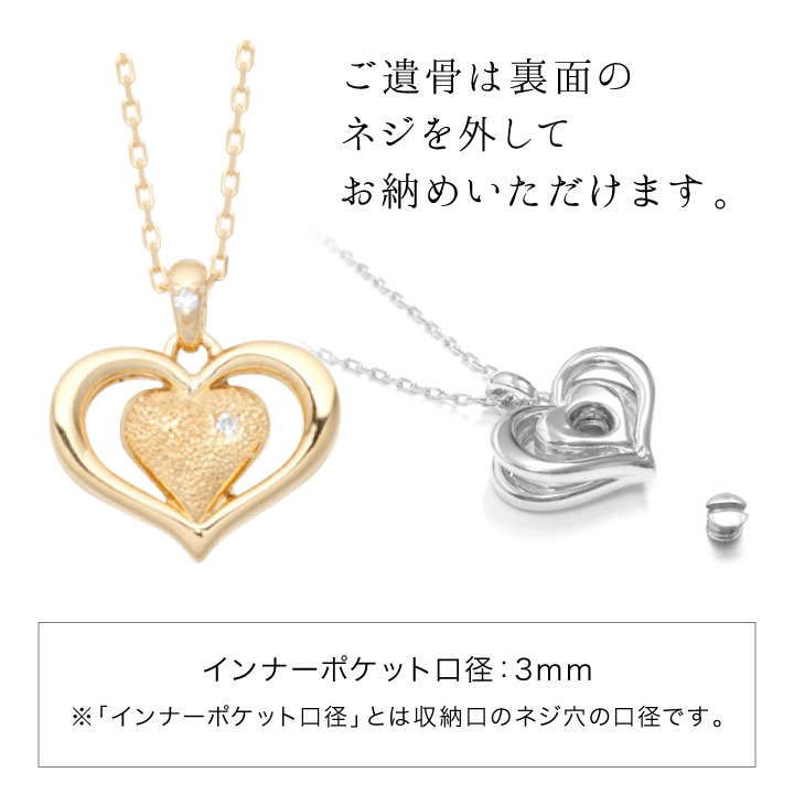 遺骨ペンダント「ハートII」は、大切な想いが伝わりそうなハート型をモチーフにした可愛らしいジュエリーです。